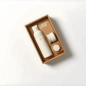Dovanų rinkinys Ocean Bottle (500 ml), kuris išsiskiria pirmąja tokio tipo modulinių dangtelių sistema. Ši sistema yra praktiška ir tinkama įvairiems gėrimams. Joje integruota dvigubo atidarymo funkcija suteikia lengvesnę prieigą pripildant gėrimu ar norint išplauti. Dovanų rinkinys pagamintas iš perdirbtų medžiagų, pasižyminčių aukšta kokybe ir mažesniu poveikiu aplinkai.